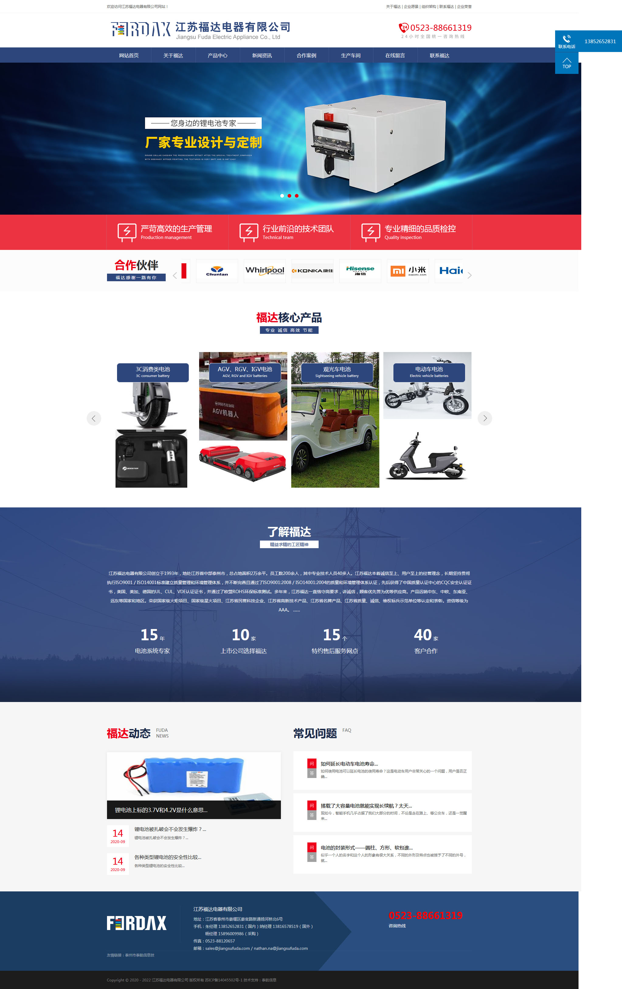 http://www.jiangsufuda.com/index.html】創(chuàng)立于1993年,地處江蘇省中部泰州市,總占地面積2萬余平。員工數(shù)200余人,其中專業(yè)技術(shù)人員40多人。江蘇福達(dá)本著“誠信至上、用戶至上”的經(jīng)營理念,長期堅(jiān)持貫徹執(zhí)行ISO9001 / ISO14001標(biāo)準(zhǔn)建立質(zhì)量管理和環(huán)境管理體系,并不斷完善且通過了ISO9001:2008 / ISO14001:2004的質(zhì)量和環(huán)境管理體系認(rèn)證,先后獲得了中國質(zhì)量認(rèn)證中心的CQC安全認(rèn)證證書,美國、美加、德國的UL、CUL、VDE認(rèn)證證書,并通過了歐盟ROHS環(huán)保標(biāo)準(zhǔn)測試。多年來,江蘇福達(dá)一直恪守“高要求,講誠信,顧客優(yōu)先“譽(yù)為優(yōu)等供應(yīng)商。產(chǎn)品遠(yuǎn)銷中東、中歐、東南亞、遠(yuǎn)東等國家和地區(qū)。榮獲“國家級火炬項(xiàng)目”、“國家級星火項(xiàng)目”、“江蘇省民營科技企業(yè)”、“江蘇省高新技術(shù)產(chǎn)品”、“江蘇省名牌產(chǎn)品”、“江蘇省質(zhì)量、誠信、維權(quán)標(biāo)兵示范單位”等認(rèn)定和表彰。資信等級為AAA。